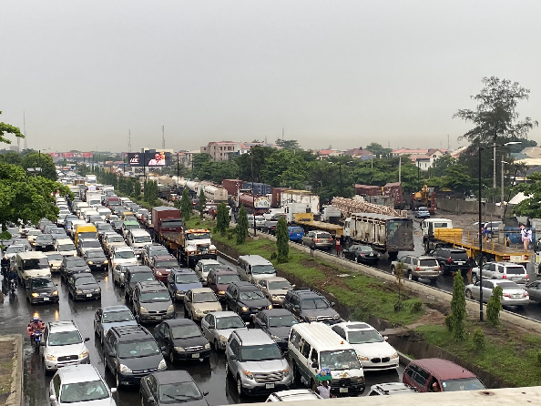 Heavy gridlock occurred on the Lagos-Ibadan Expressway on Saturday morning after a truck fell and blocked one lane of the road.